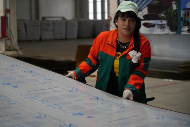 9月21日,32岁的古丽巴尼沙·艾米热在新疆喀什欣海新材料科技有限公司的高分子新材料生产车间内工作◇☆,她来自喀什市伯什克然木乡。中青报·中青网记者 王雪迎/摄