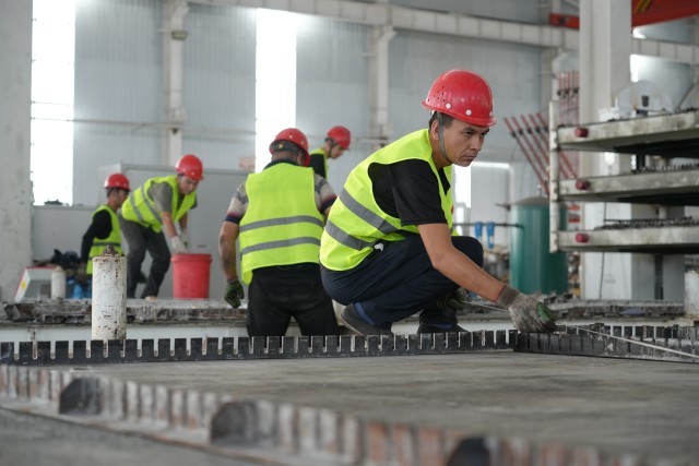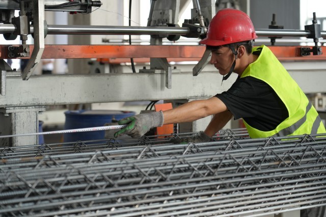 9月21日,新疆北方科技发展有限公司钢构车间内的青年员工,该公司是以装配式混凝土建筑、装配式钢结构建筑、轻质新型建筑材料研发、生产、销售和服务于一体的科技型民营企业-。中青报·中青网记者 张玘云/摄