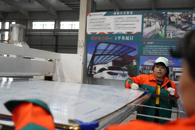 9月21日□,新疆喀什欣海新材料科技有限公司在喀什综合保税区落地生产仅半个月时间,已经收到了乌兹别克斯坦★▼•、吉尔吉斯斯坦等国家的订单,该公司生产PC阳光板●、瓦楞板和PC耐力板等高分子新材料产品。图为该公司生产车间。中青报·中青网记者 王雪迎/摄